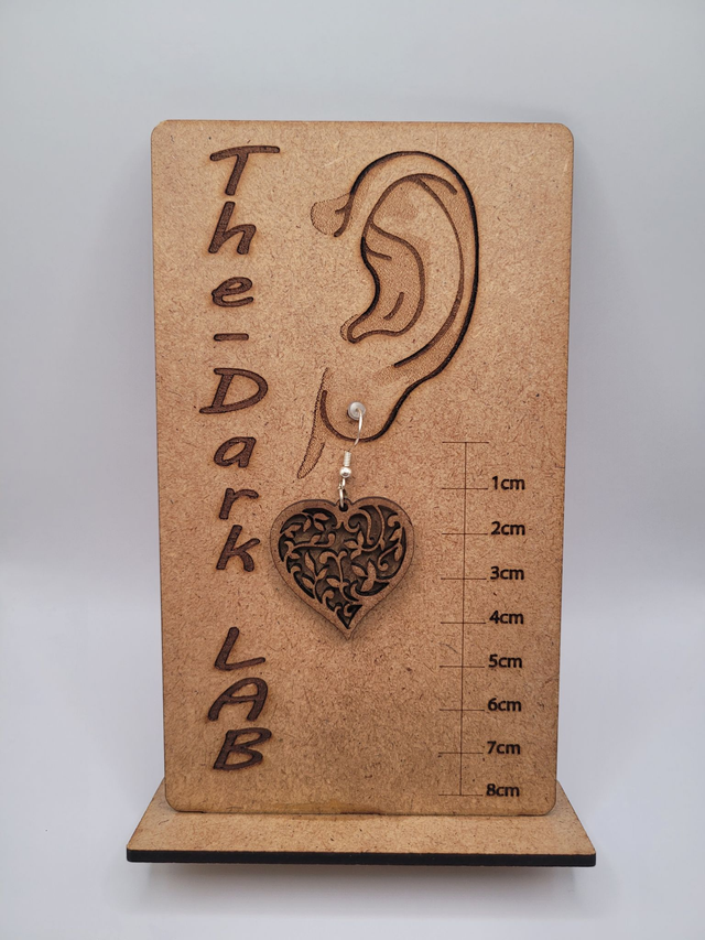 Boucles d'oreilles en bois découpées au laser, fabriquées à la main dans notre atelier en France.