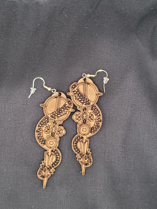 Boucles d'oreilles en bois découpées au laser, fabriquées à la main dans notre atelier en France.