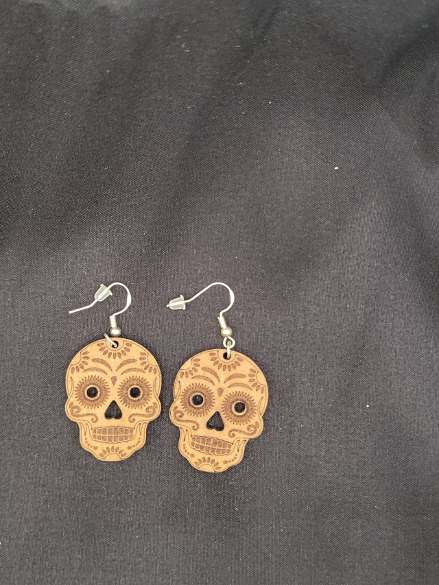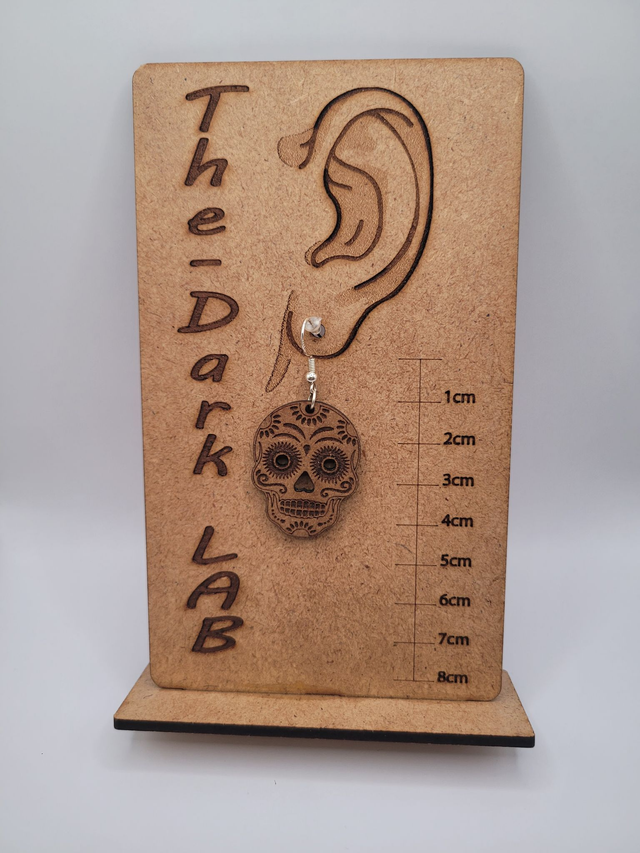 Boucles d'oreilles en bois découpées et gravé (Recto, Verso) au laser, fabriquées à la main dans notre atelier en France.