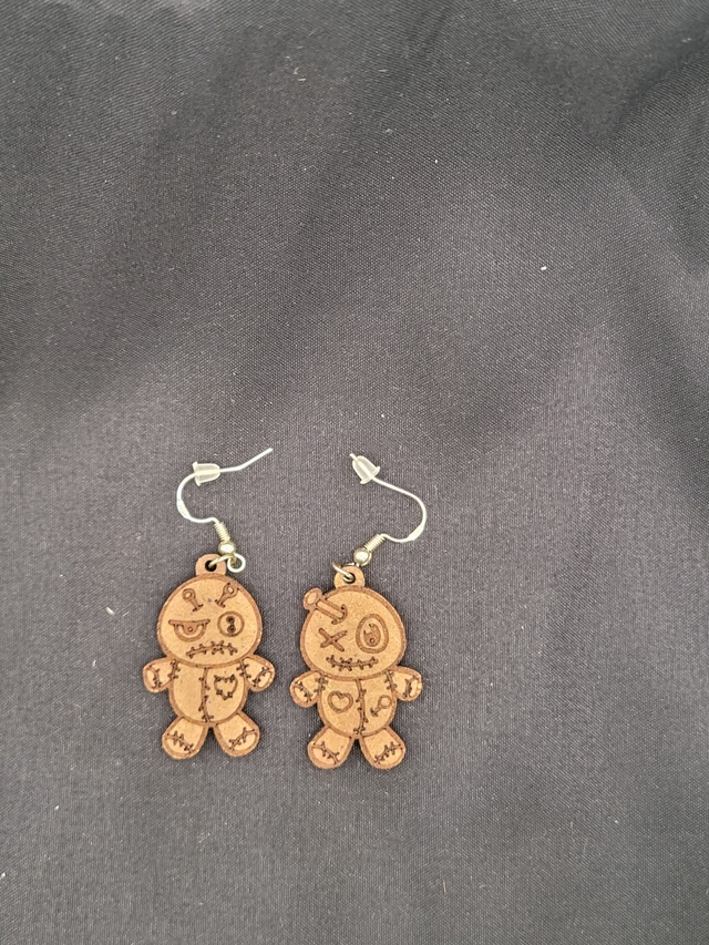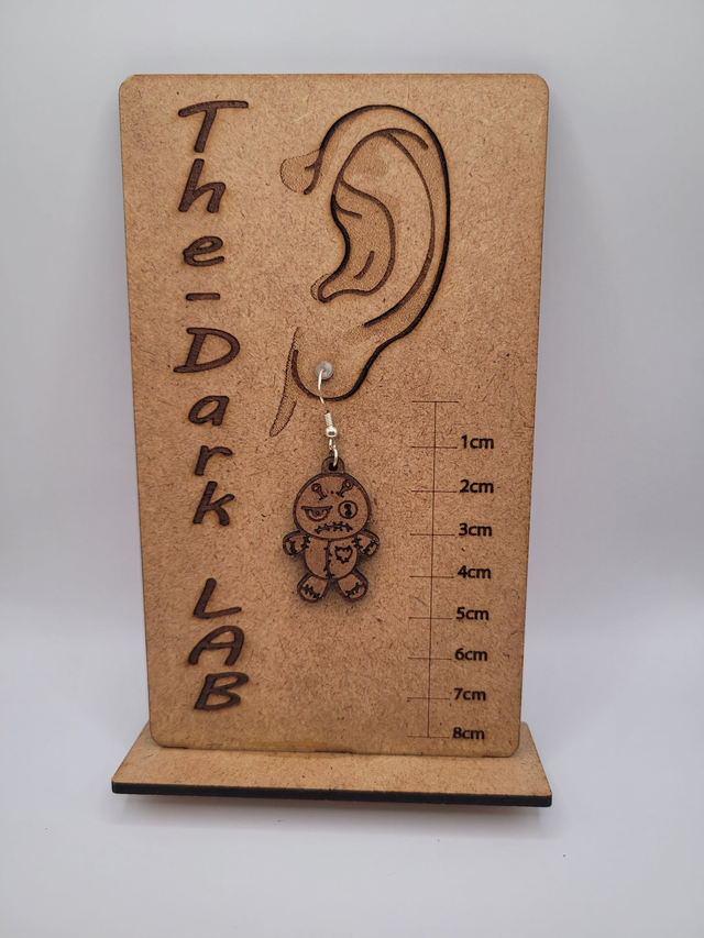 Boucles d'oreilles en bois découpées et gravé (Recto, Verso) au laser, fabriquées à la main dans notre atelier en France.