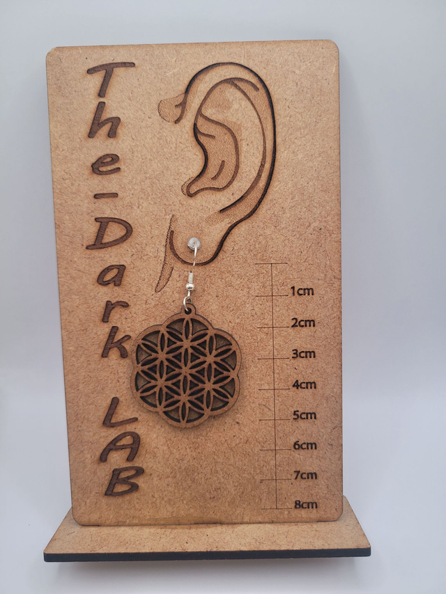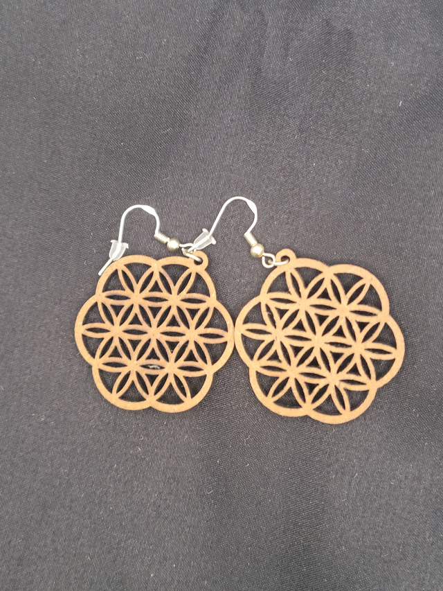 Boucles d'oreilles en bois découpées au laser, fabriquées à la main dans notre atelier en France.